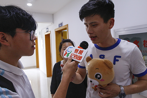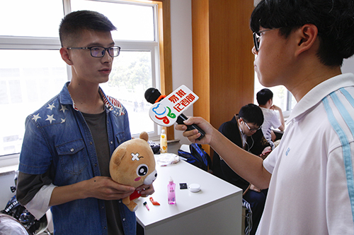 我们首先采访到的是心理话剧社社长赖勇,他向我们表示:我们对于这次节目准备了很长时间。在排练的过程中我们也遇到了不少的困难,但经过大家一次次的磨合现在都能表演的很自然了。希望今天我们话剧社的表演能给观众带来一些启发,也祝愿这次的活动能圆满成功!