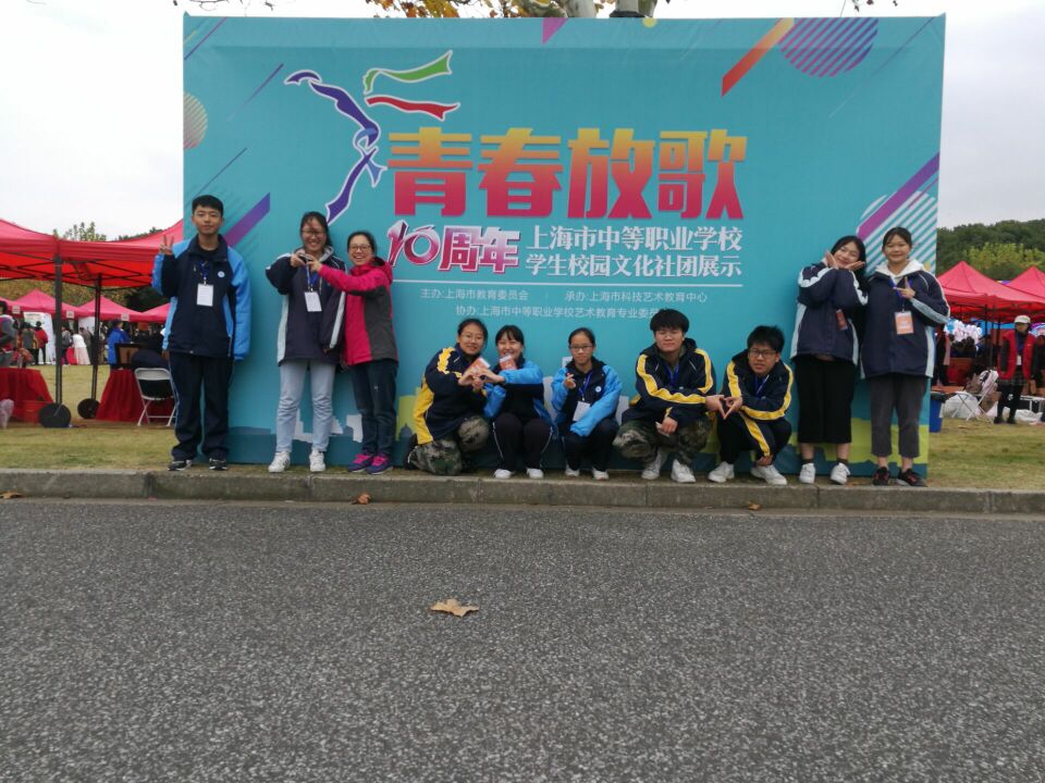 2018年11月17号,在市教委组织下,“青春放歌”十周年上海市中等职业学校学生文化社团展示在东方绿洲正式开展。我校也派出了手工社与制章社作为我校优秀社团代表进行展示。