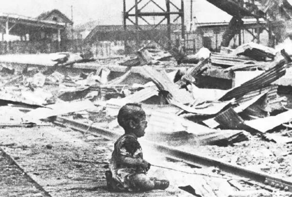 1937年8月28日,日军轰炸上海南站,炸死候车妇孺200余名,一个满身是血的幼儿嚎啕大哭。