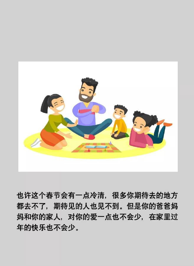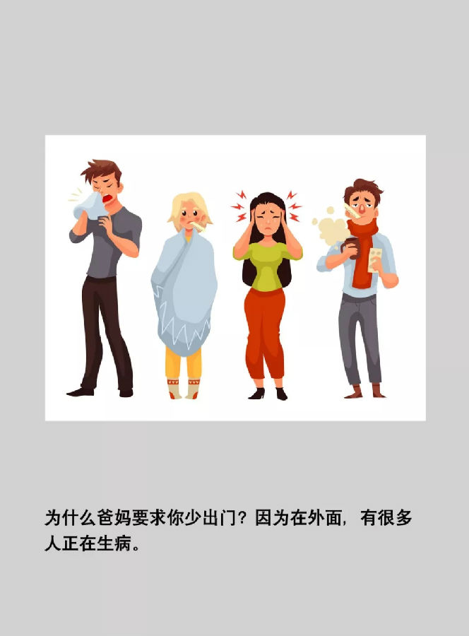 1.要避免去人多的地方,最大限度地减少接触病毒的机会,这也是爸爸妈妈为什么这个春节没有出门的主要原因。