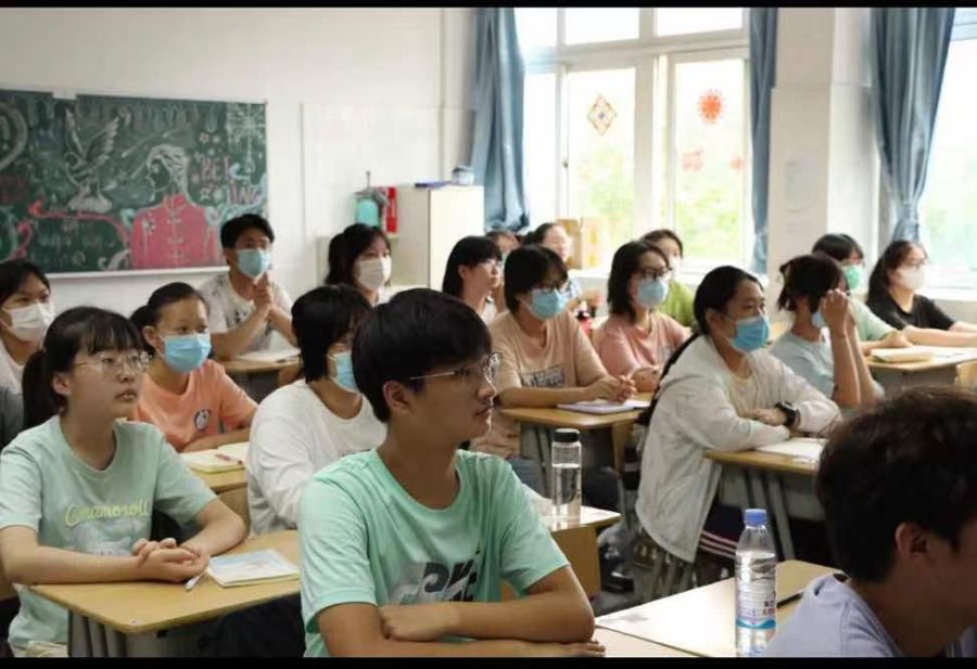 鉴于疫情防护,进入我校,需出示24小时健康码,并且测量体温。进入报告厅需佩戴口罩,隔开入座。我校以线上线下同时进行网络直播的形式举办本次典礼,部分新生于图书馆报告厅现场参与。